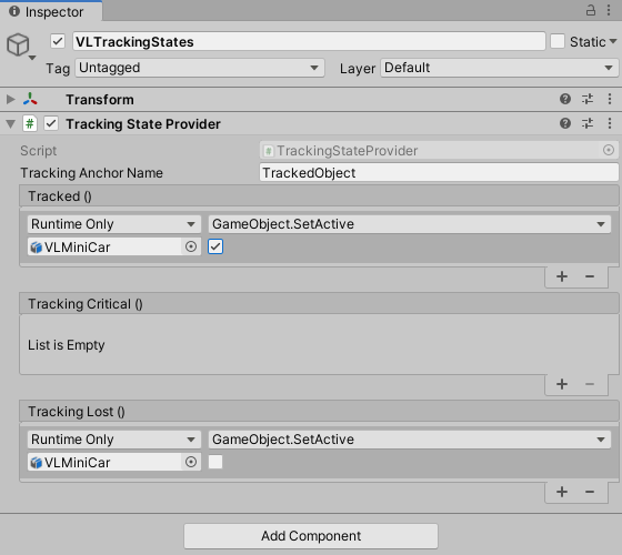 If you need to call a more specific behaviour, you can also access the tracking states within your script by listening to VisionLib's tracking states event.