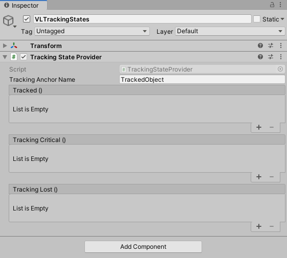 VisionLib comes with the TrackingStateProvider (You can see it in use within the PosterTracking example scene of the VisionLib.SDK.Examples-Unity.unitypackage). You can simply drag it on a GameObject, to react to tracking state changes without the need to write a custom script.