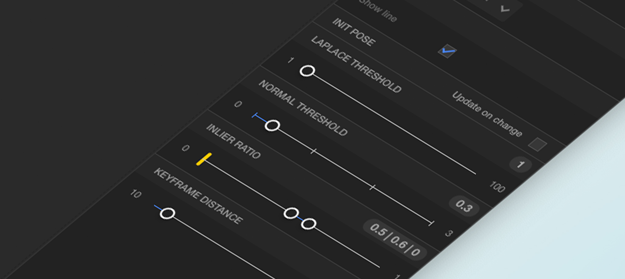 | minInlierRatioTracking | tracking threshold | pose estimation | 0.0 - 1.0 |