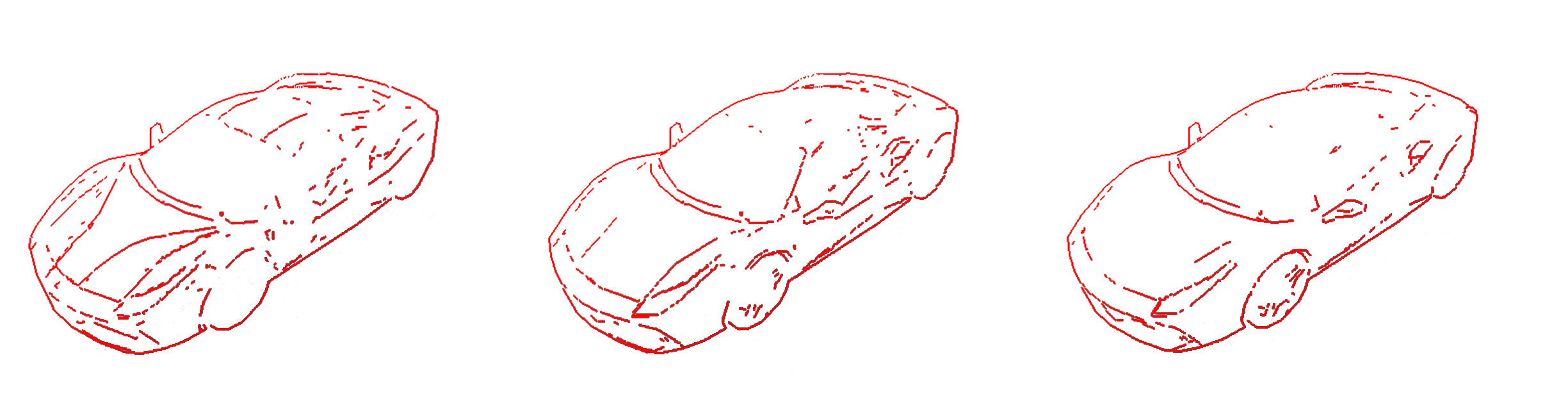 The example image above shows a configured laplaceThreshold of 1, 5 and 10 mm for a 1:18 car model of a Ferrari (with normalThreshold at a very high value to render it irrelevant).