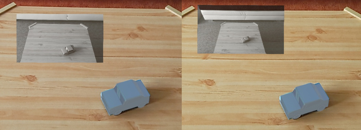 Our HoloLens example scenes also provide voice commands which help you to find out which setting fits best for you tracking target. E.g. within the HoloLensSimpleModelTracking scene, say Show Debug Image and toggle the field of view by using the commands Wide Field of View and Narrow Field of View. Move to your desired initialization spot. If your tracking target is still completely visible inside the debug image while using the narrow field of view (like it is the case with our paper car), you should set "fieldOfView": "narrow" inside your tracking configuration. If not, use "fieldOfView": "wide".